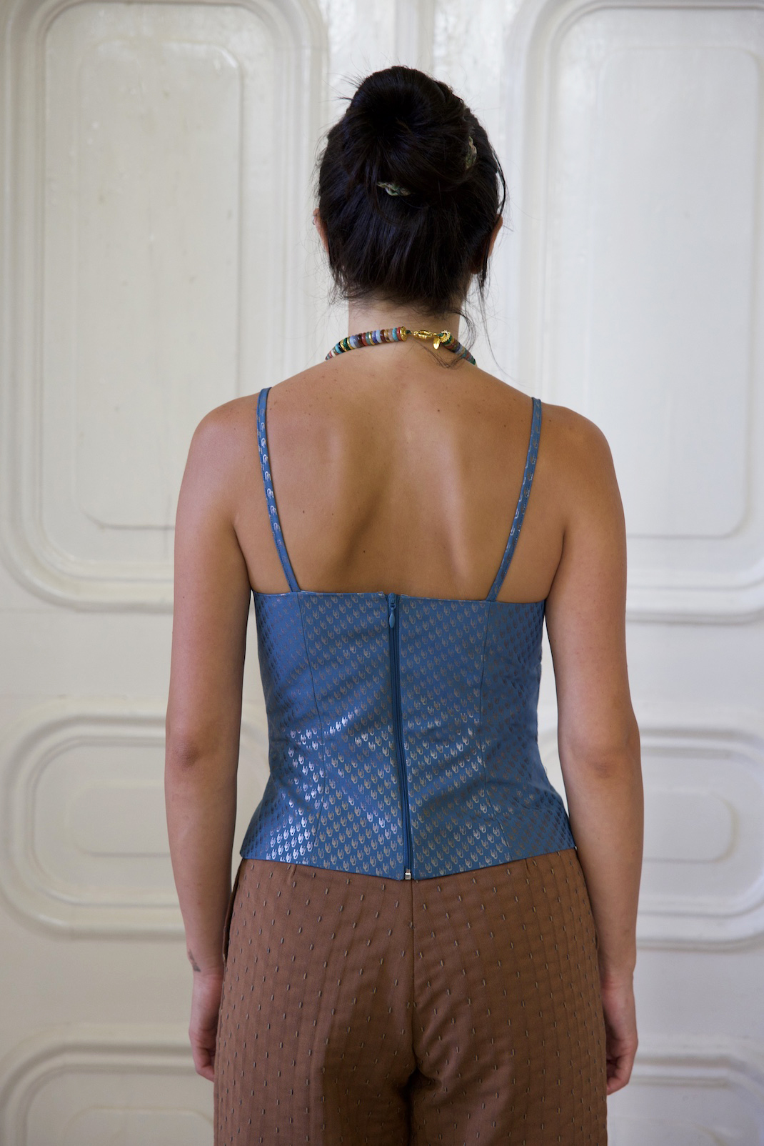 A sleek, body-hugging top crafted to flatter your silhouette, featuring a refined back zip detail. Perfect for a night out or for layering under your favorite jacket in winter. The top is lined in black for added comfort.